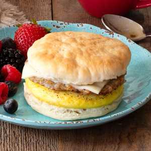 Fluffy biscuits hug savory breakfast sausage, Certified Humane eggs ‡, and melty cheese—all ready in just two minutes.