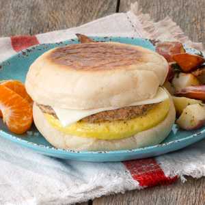 Toasty English muffins hug savory breakfast sausage, Certified Humane eggs ‡, and melty cheese—all ready in just two minutes.